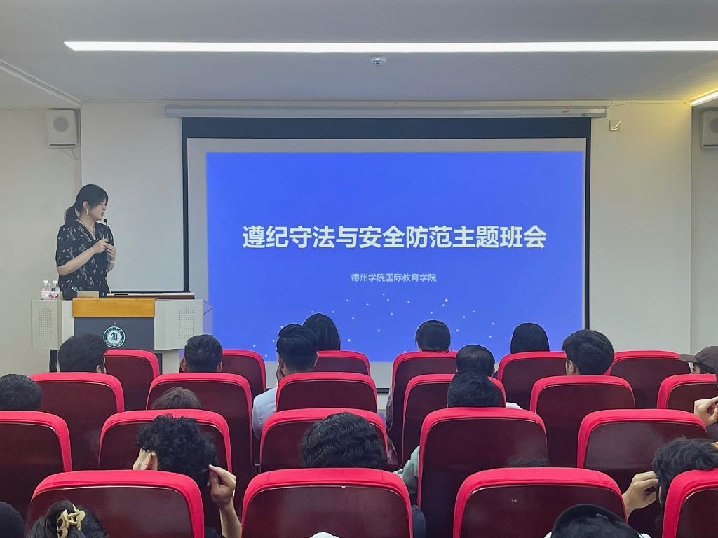 主讲老师结合近期高校典型案例,提醒学生严防各类诈骗,警惕“低价换汇”“冒充熟人”等骗局,拒绝点击来路不明的链接或下载陌生软件。向学生强调注意出行安全,遵守交通法规,规范使用共享交通工具,并结合德州夏季天气特点,提醒学生及时关注极端天气并做好防范。会上再次向全体学生公布学院应急联系电话,确保学生紧急事件响应渠道畅通。